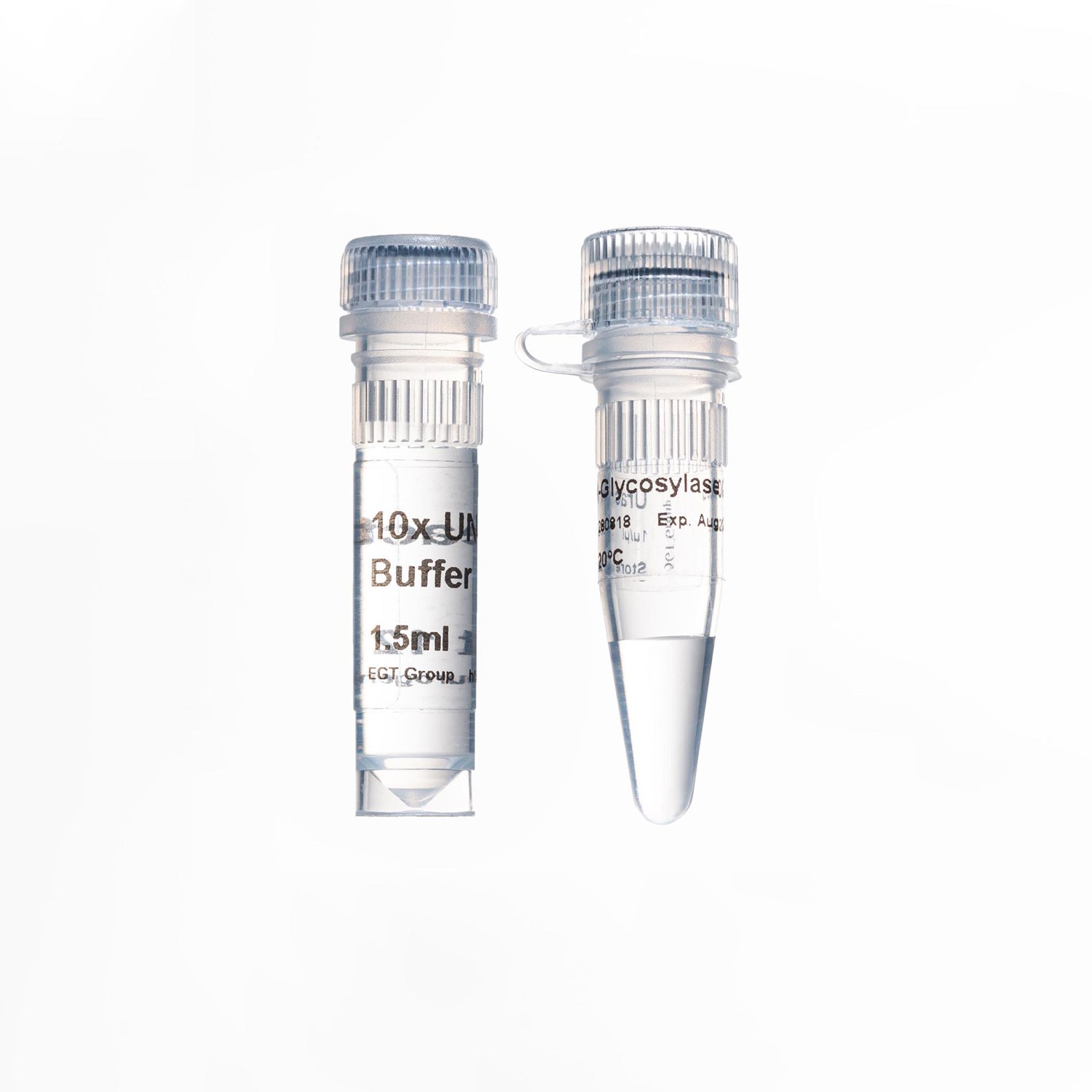 E.coli uracil-DNA glycosylase (UDG or UNG) hydrolyses the release of free uracil from uracil-containing DNA. UDG efficiently hydrolyses single or double-stranded DNA, but not from oligomers (6 or less bases). The Uracil-N-Glycosylase (UNG) is an enzyme that hydrolyses all single-stranded and double-stranded DNA containing dUTPs. Consequently, if all PCR amplifications are performed in the presence of a dNTPs/dUTP blend, by carrying a UNG step before every run it is possible to get rid of any previous undesired PCR product containing dUTP.